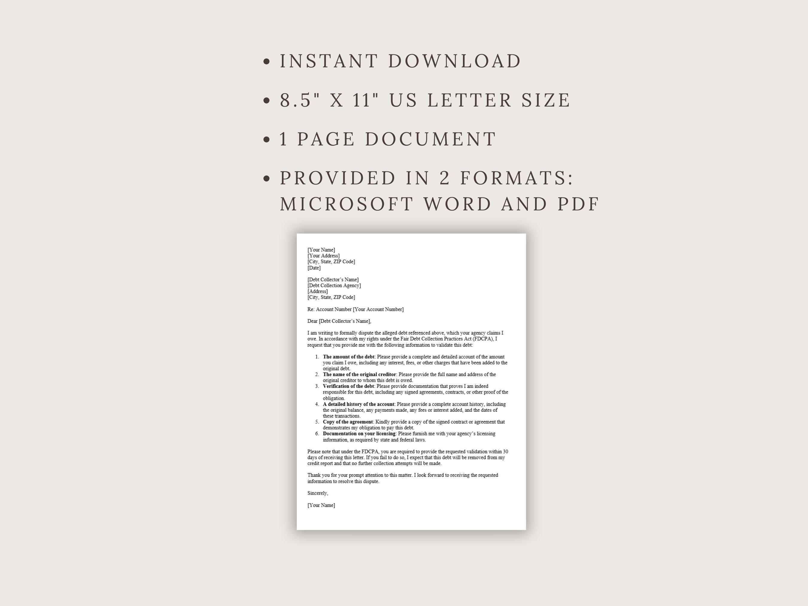 Debt Collection Dispute Letter in Word Google Docs Pages Download