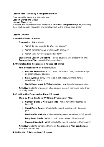 How to write a progression plan (Btec Animal Care Level 1) Teaching