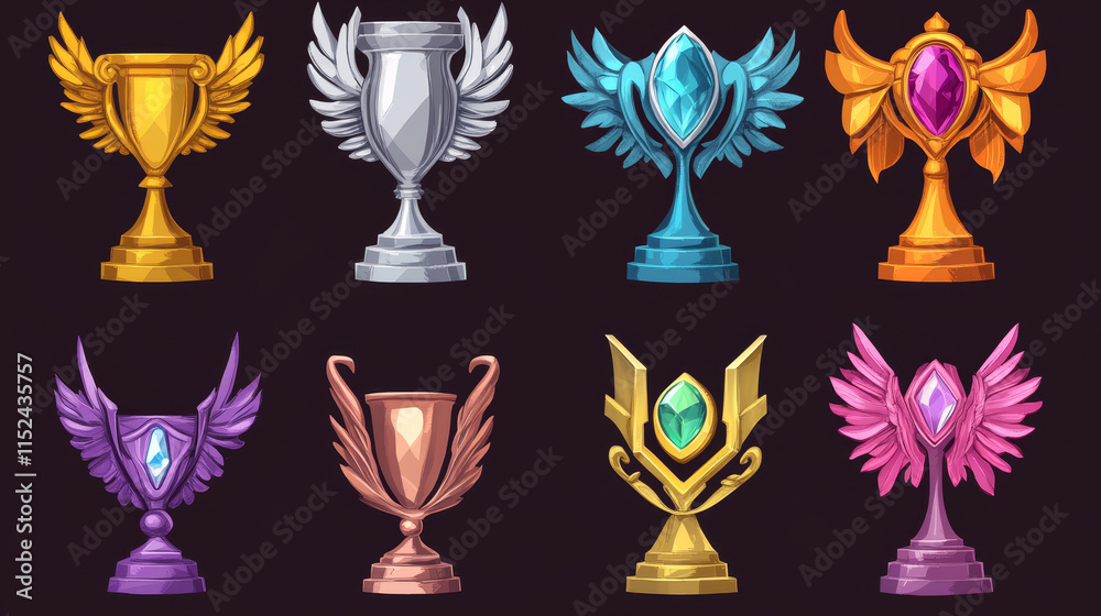 Award goblet and trophy cup for game level rank ui design Cartoon
