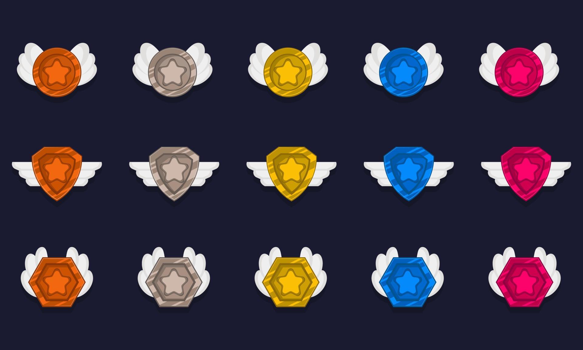 Premium Vector Game vector emblems set Level rank badges Woody silver