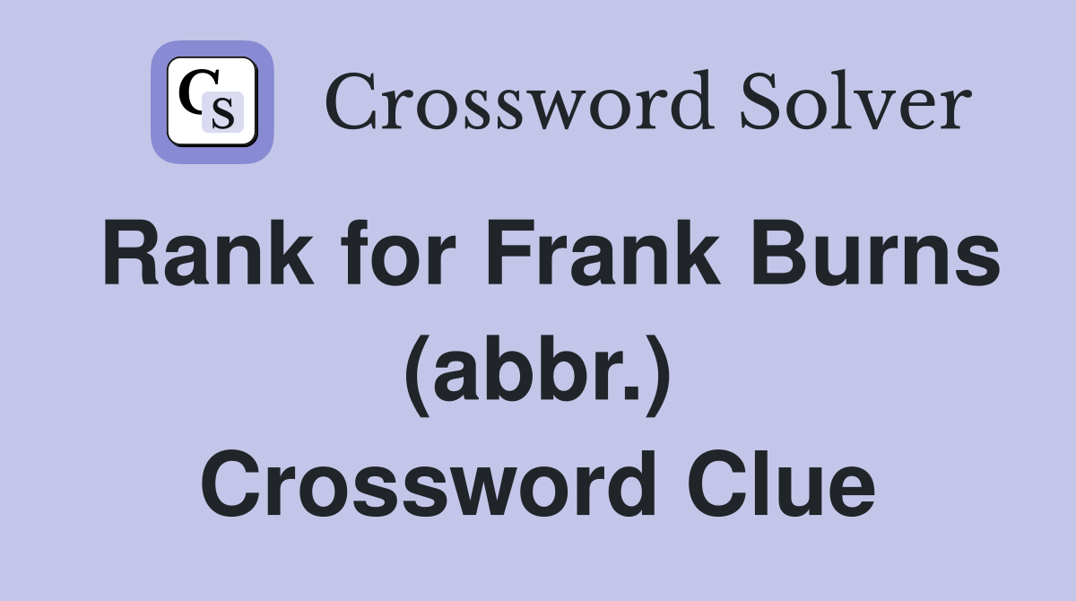 Rank for Frank Burns (abbr ) Crossword Clue Answers Crossword Solver