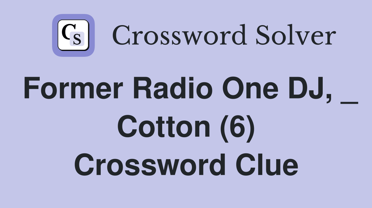 Former Radio One DJ Cotton (6) Crossword Clue Answers Crossword