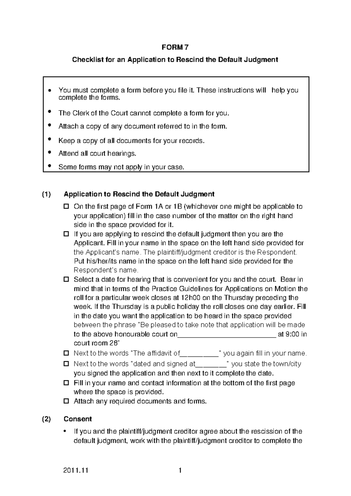 Checklist FOR Application FOR Rescission OF DJ 2011 1 FORM 7