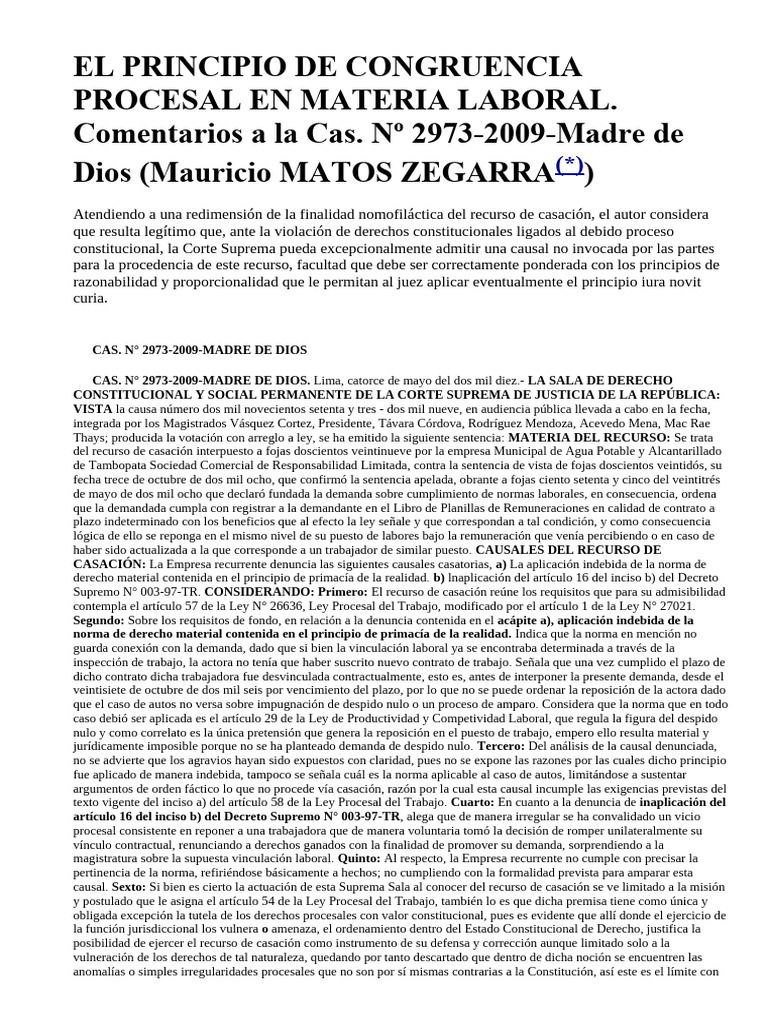 DJ 2011 156 EL PRINCIPIO DE CONGRUENCIA PROCESAL EN MATERIA LABORAL