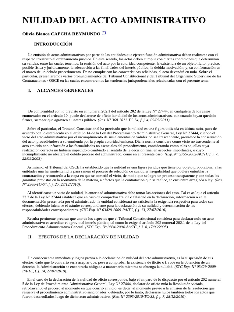 DJ 2011 154 Nulidad de Acto Administrativo PDF Debido al proceso