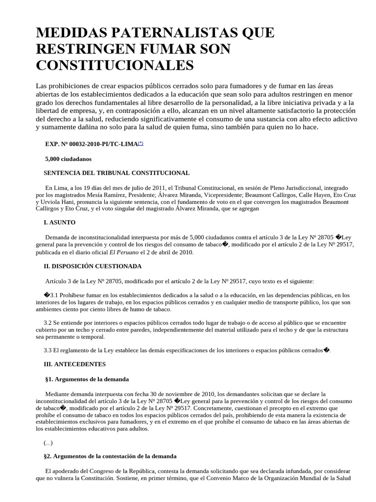 DJ 2011 156 Medidas Paternalistas Que Restringen Fumar Son