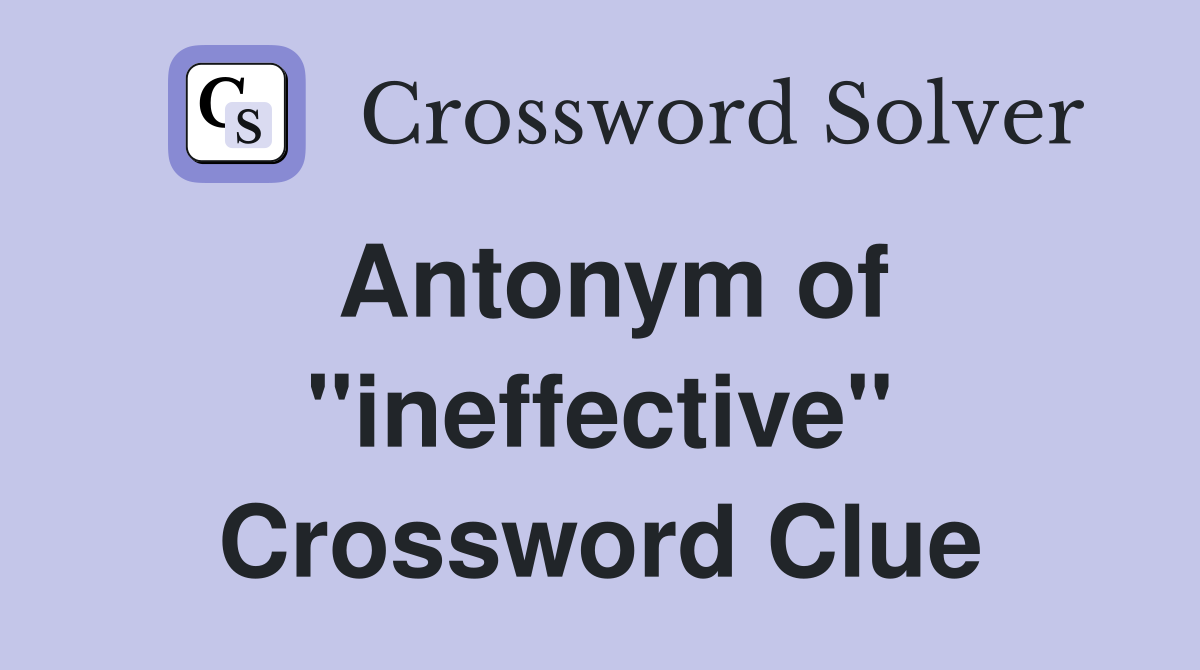 Antonym of #39 #39 ineffective #39 #39 Crossword Clue Answers Crossword Solver