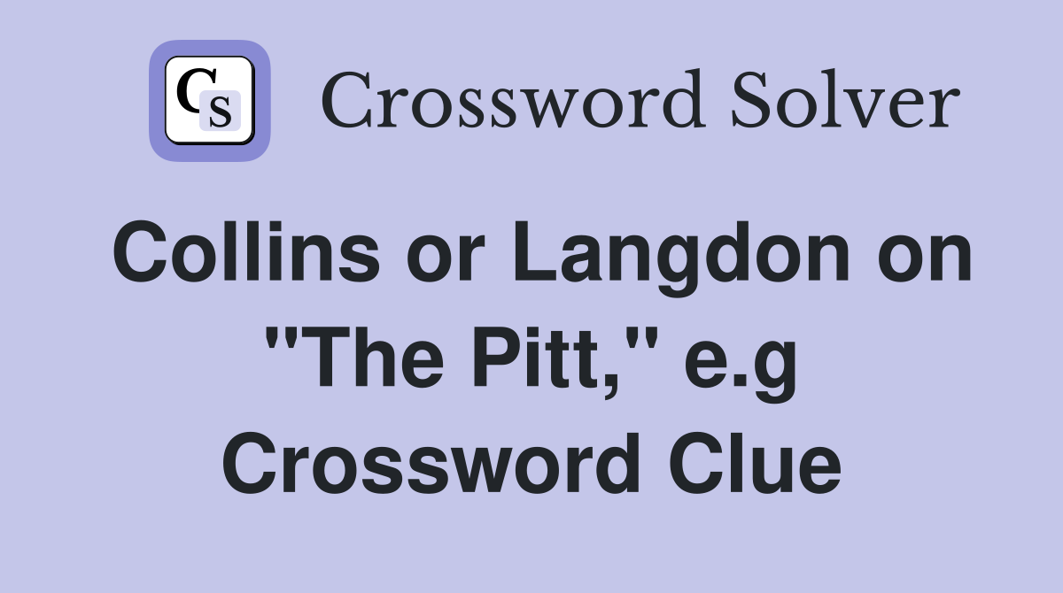 Collins or Langdon on quot The Pitt quot e g Crossword Clue Answers