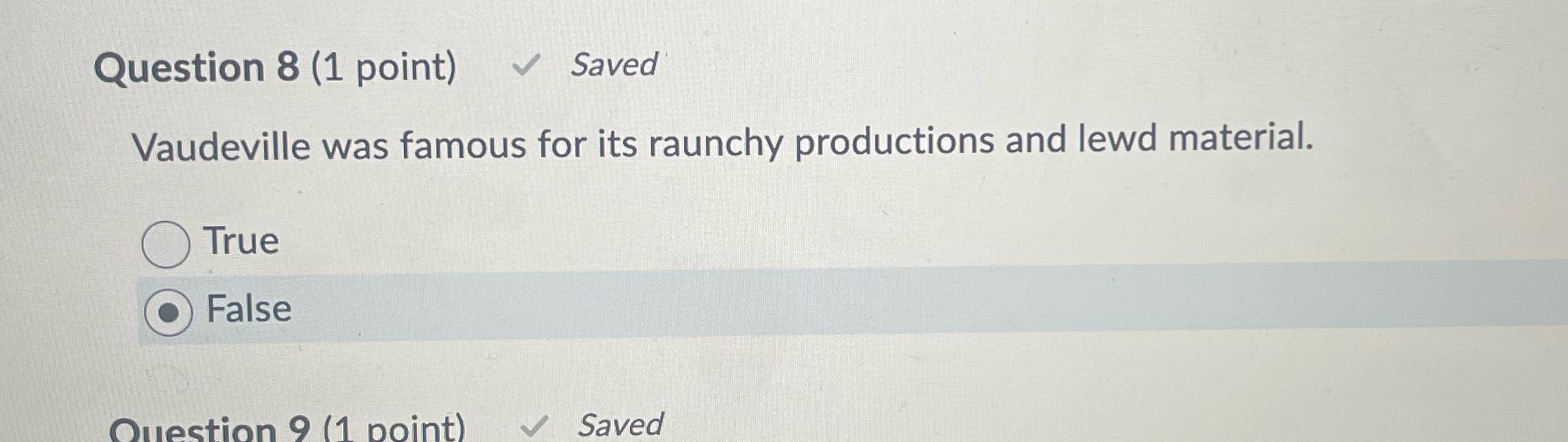 Solved Question 8 (1 point) SavedVaudeville was famous Chegg com
