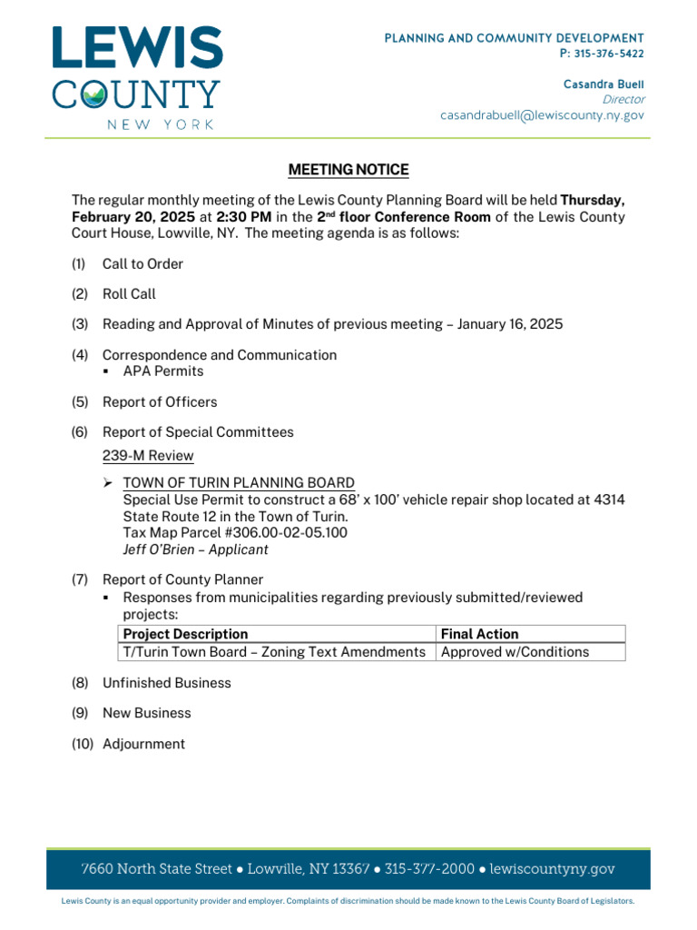 LEWIS COUNTY INFORMATION Village of Copenhagen