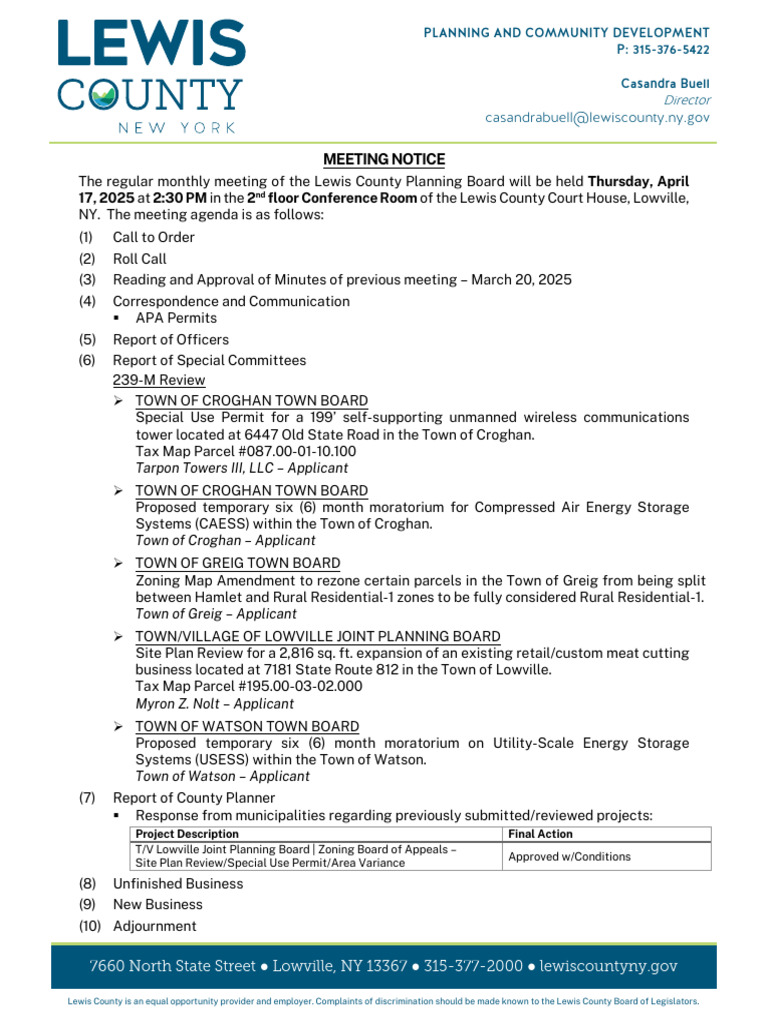 Lewis County Planning Board Agenda April 17 2025 PDF Government