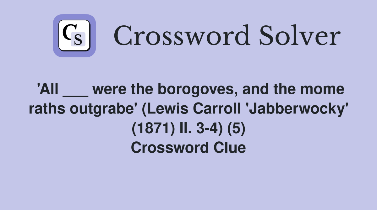 brillig and the slithy toves quot (Lewis Carroll) Crossword Clue Answers