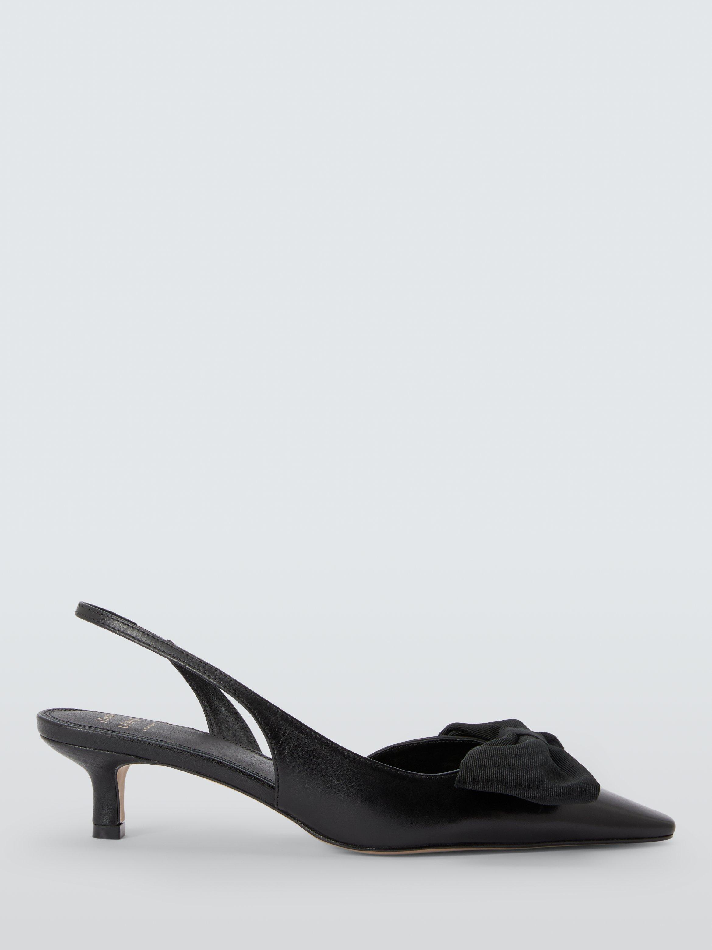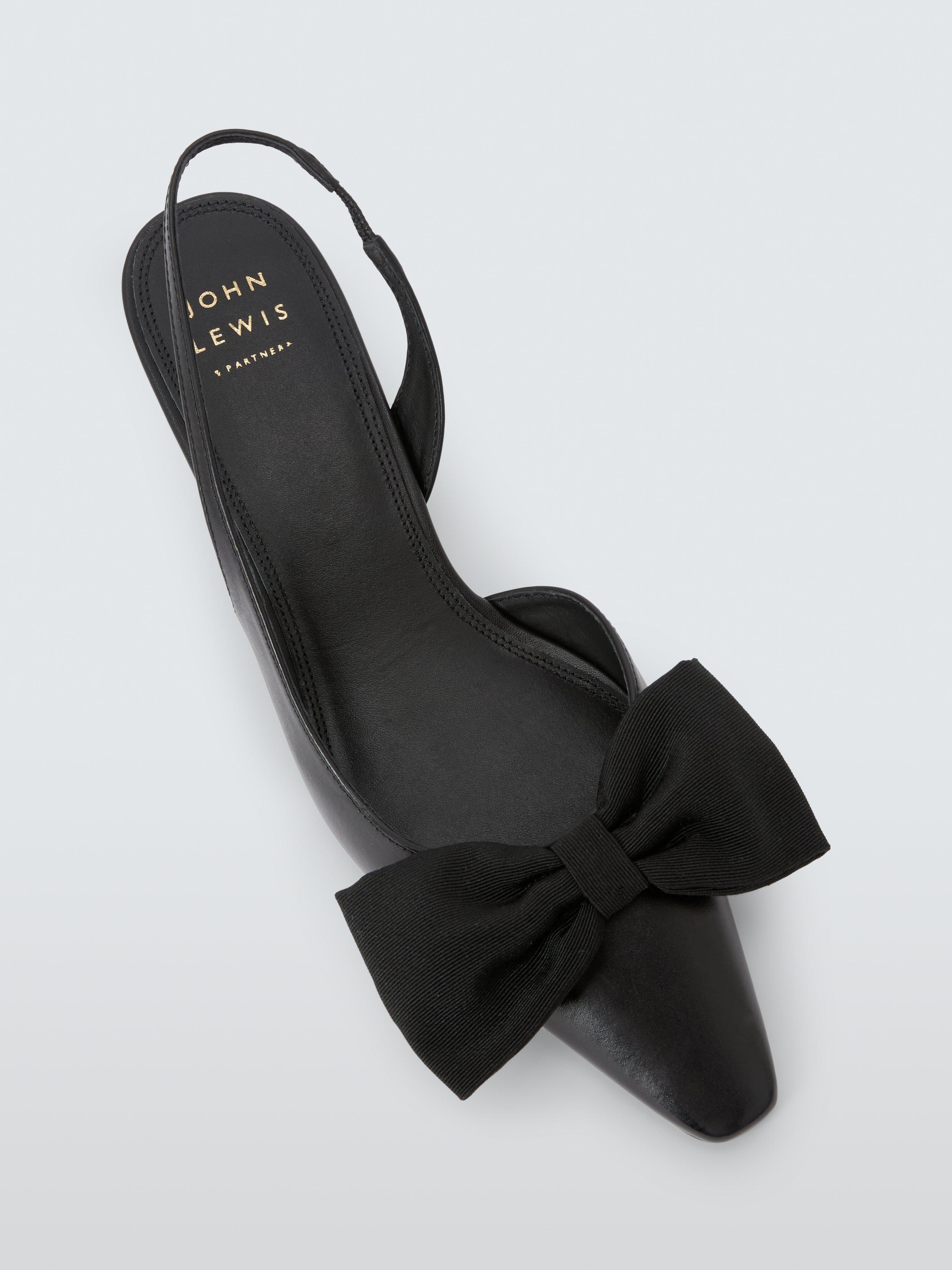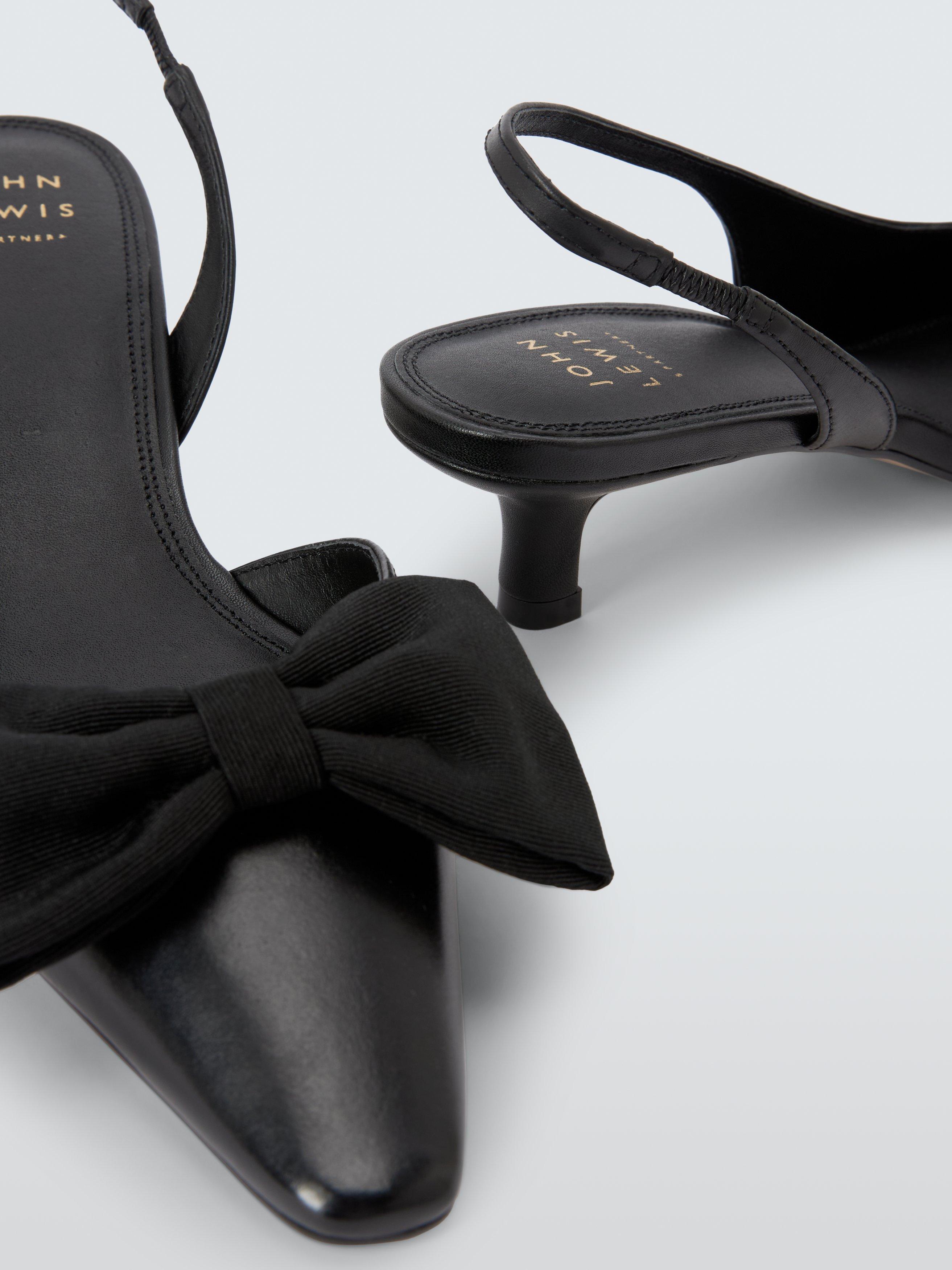 John Lewis Dolly Leather Mid Heel Demi Bow Court Shoes Black