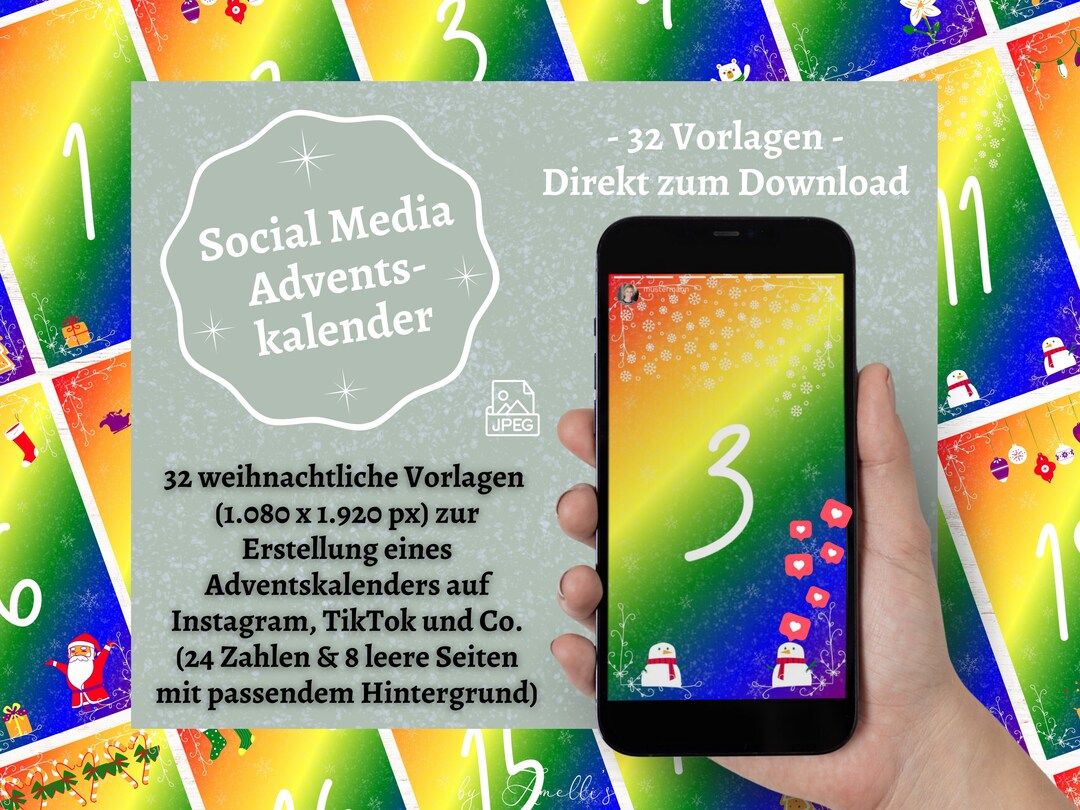 Instagram Advent Calendar Templates Rainbow Social Media Christmas
