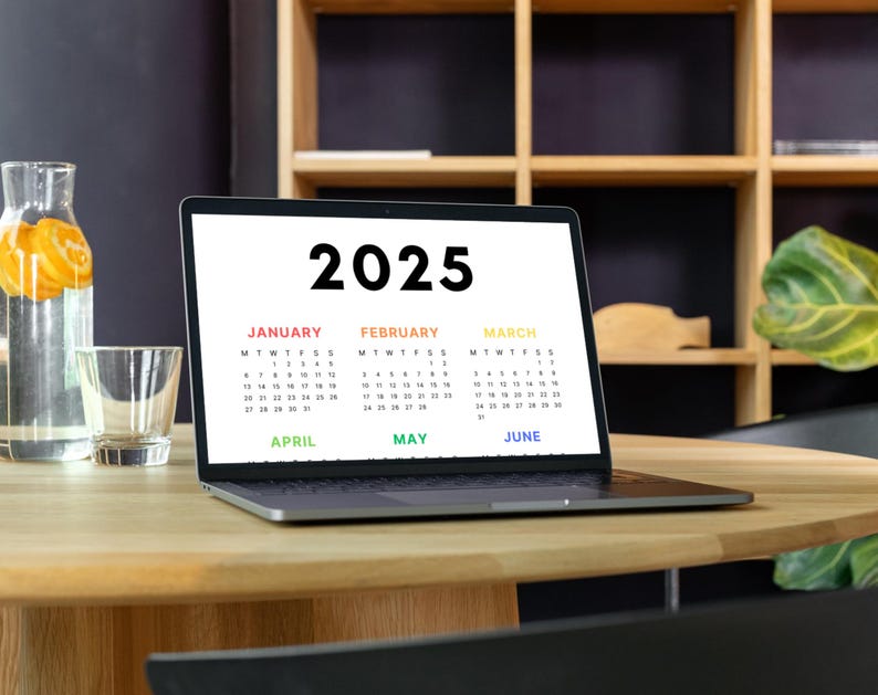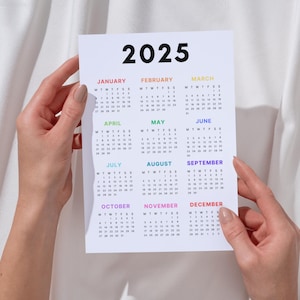 2025 Calendar Single Page Full Year Calendar Desk Calendar Wall
