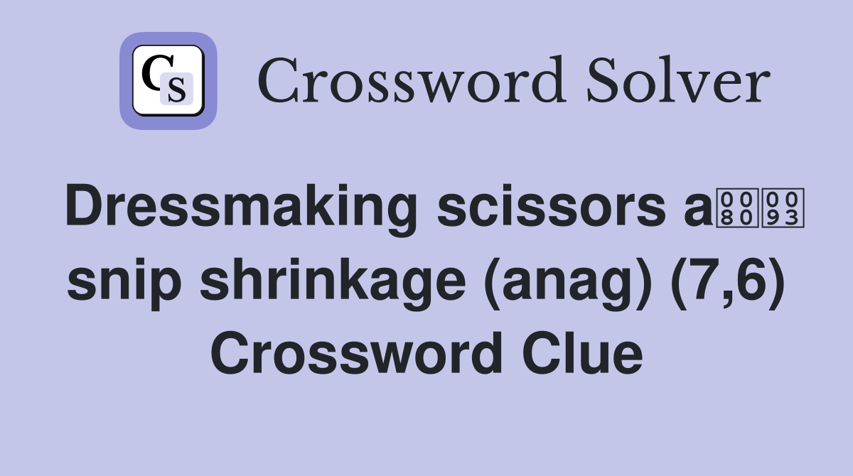 Dressmaking scissors a snip shrinkage (anag) (7 6) Crossword Clue