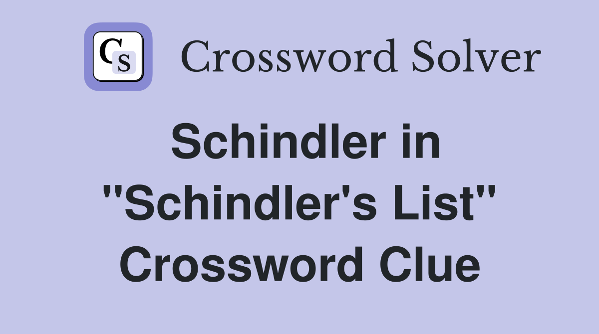 Schindler in Schindler s List Crossword Clue Answers Crossword