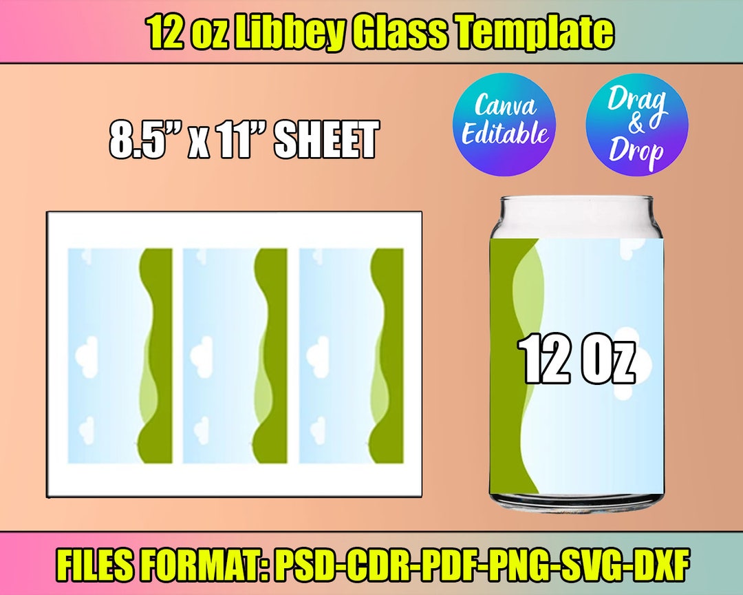 12oz Libbey Glass Template Svg 16oz 20oz 24oz Canva Editable Full