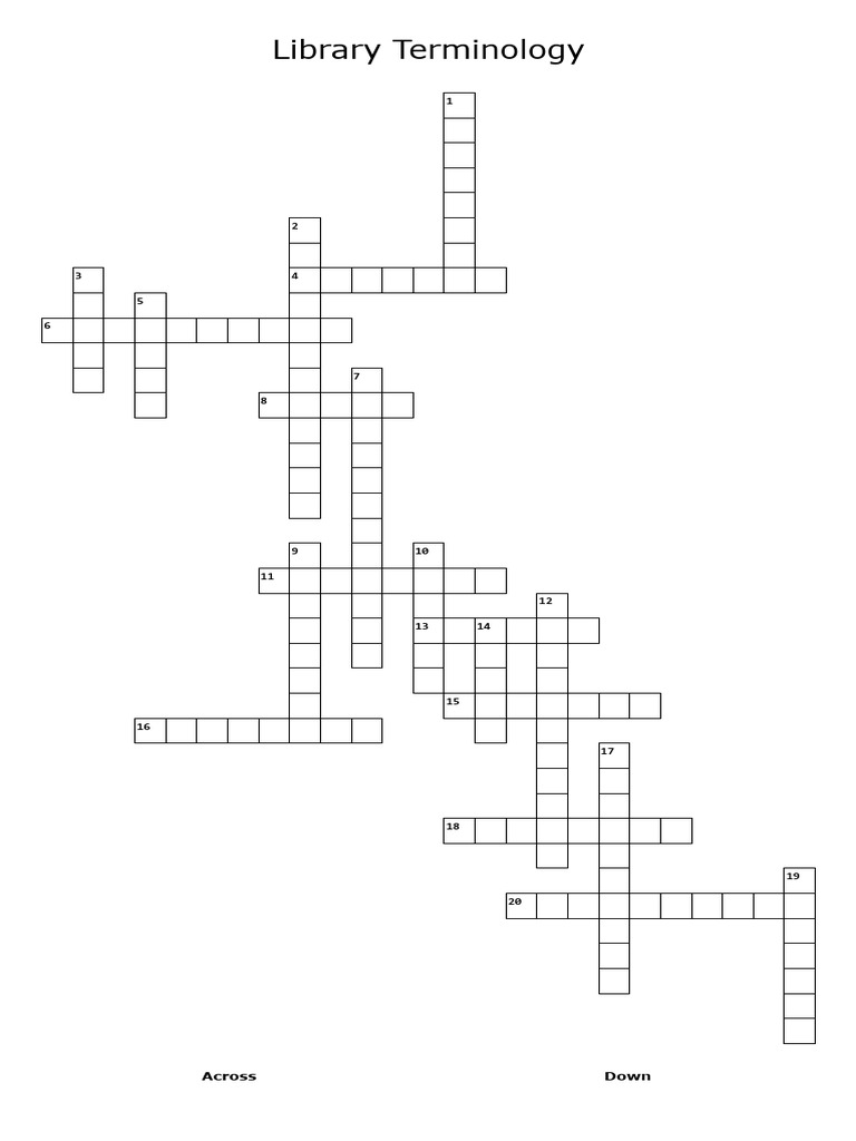 Library Terminology Crossword Labs blank PDF Information Libraries