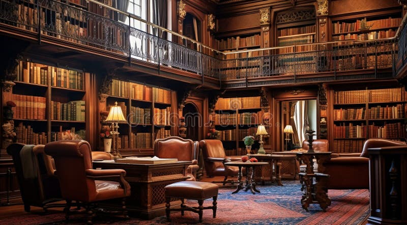 Interior View of a Cozy Library with Dim Lighting Stock Image Image