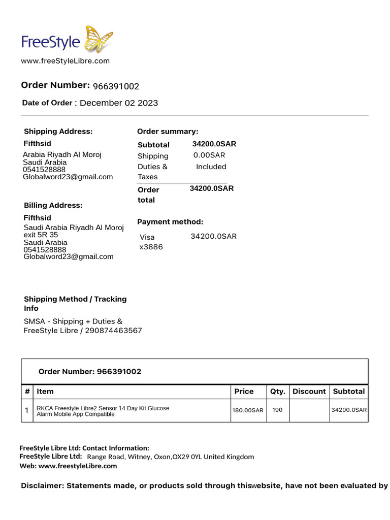 Invoice Freestyle Libre Orignal PDF