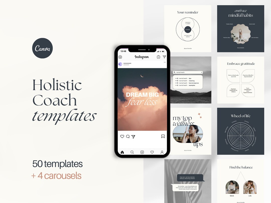Holistic Coach Instagram Canva Post Templates Health Content Content