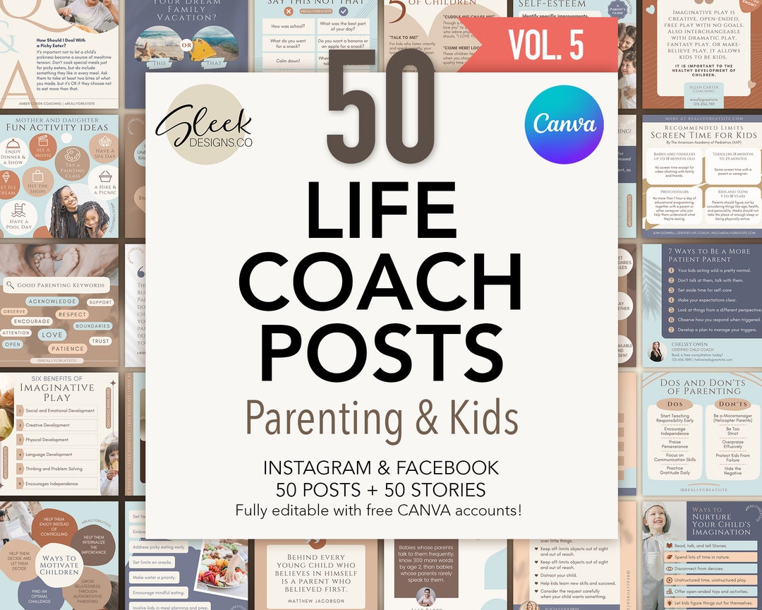 50 Life Coach Templates Volume 5 Parenting Advice Editable CANVA