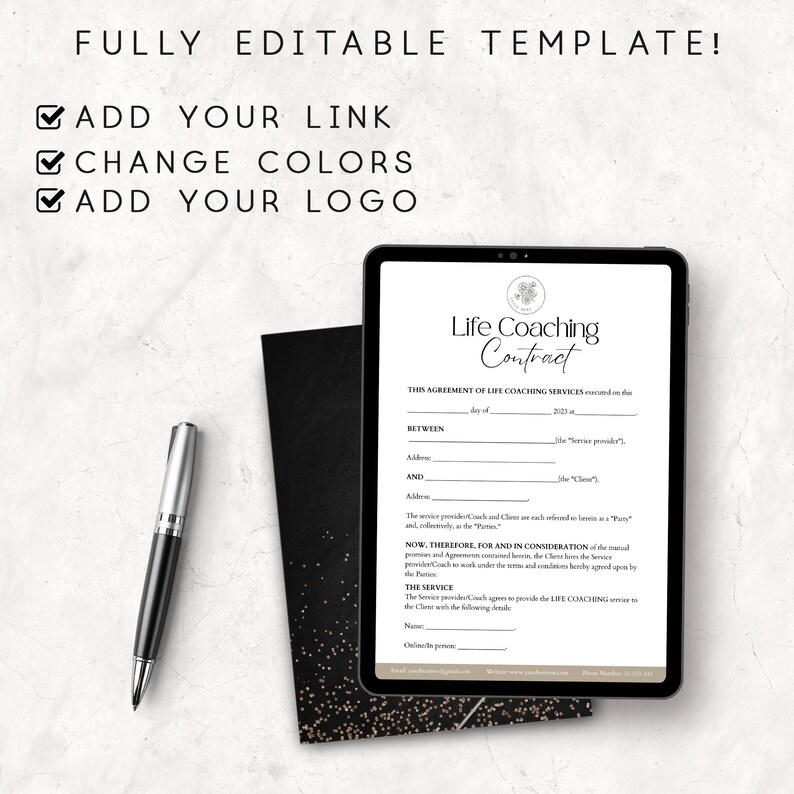Life Coaching Contract Template Customizable Canva Template Etsy