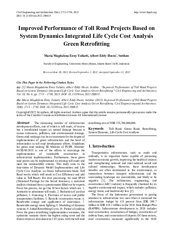 (PDF) Improved Performance of Toll Road Projects Based on System