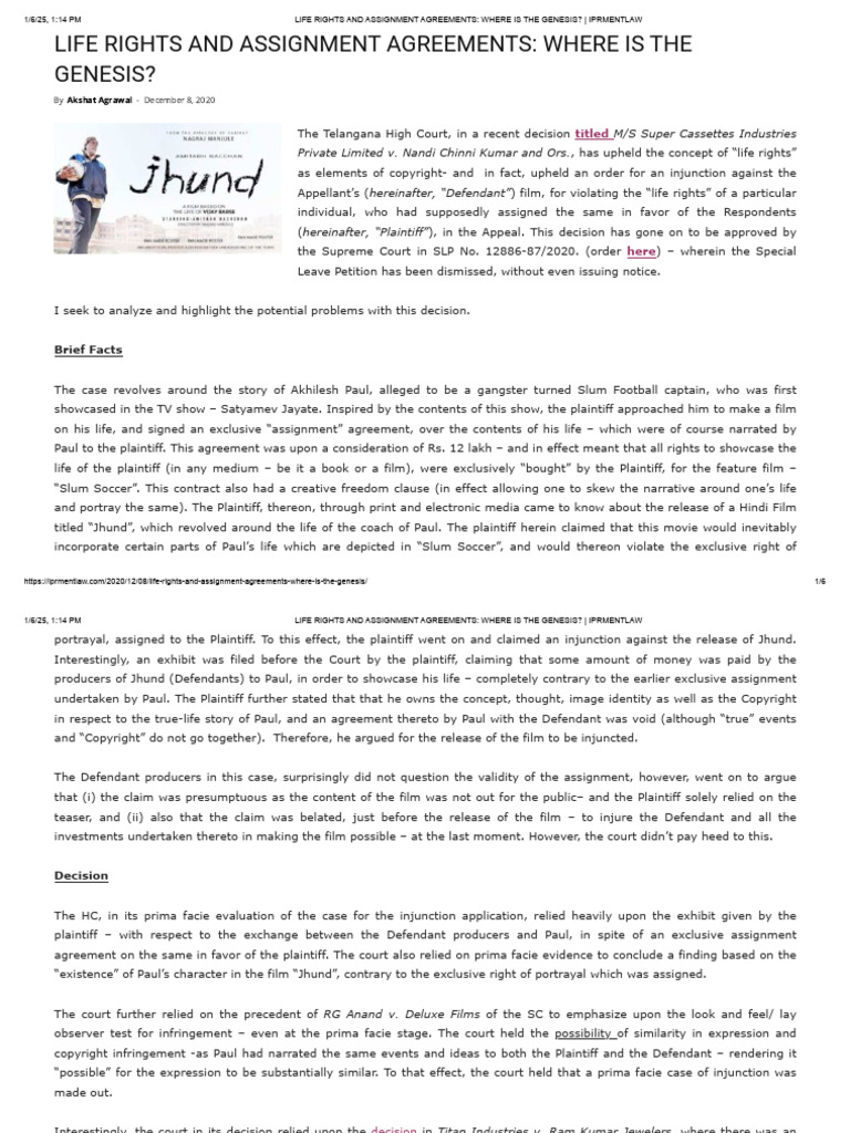 Article Life Rights and Assignment Agreements Where is the Genesis