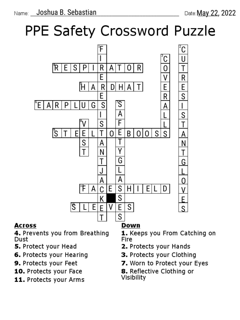 PPE Safety Crossword Puzzle 38a60 61633d5b PDF