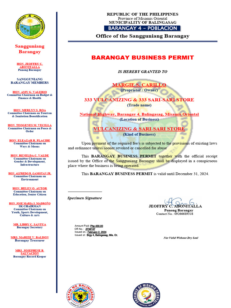 Barangay Business Permit PDF