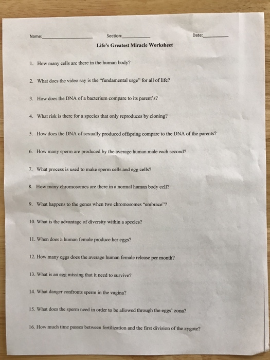 Lifes greatest miracle worksheet pdf Name: Date: Reproduction