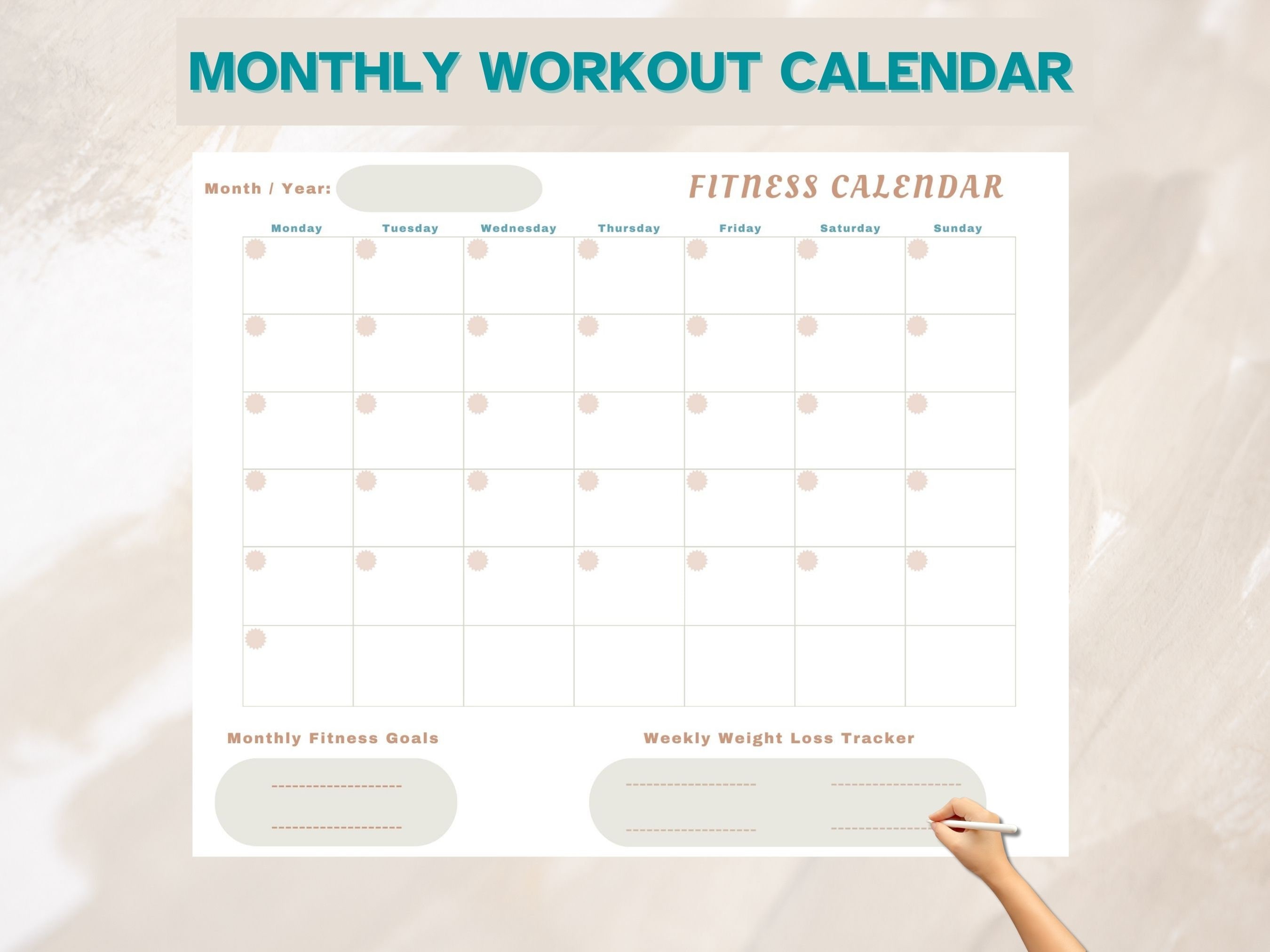 Monthly Workout Calendar Printable Monthly Weight Loss Tracker Etsy