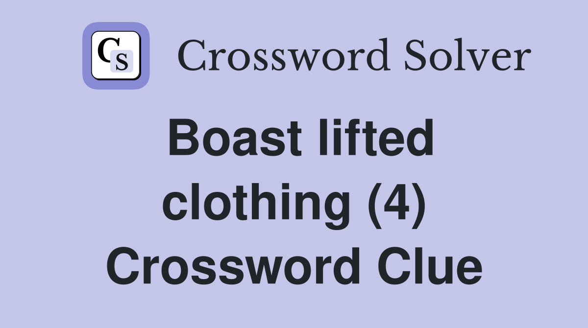Boast lifted clothing (4) Crossword Clue Answers Crossword Solver