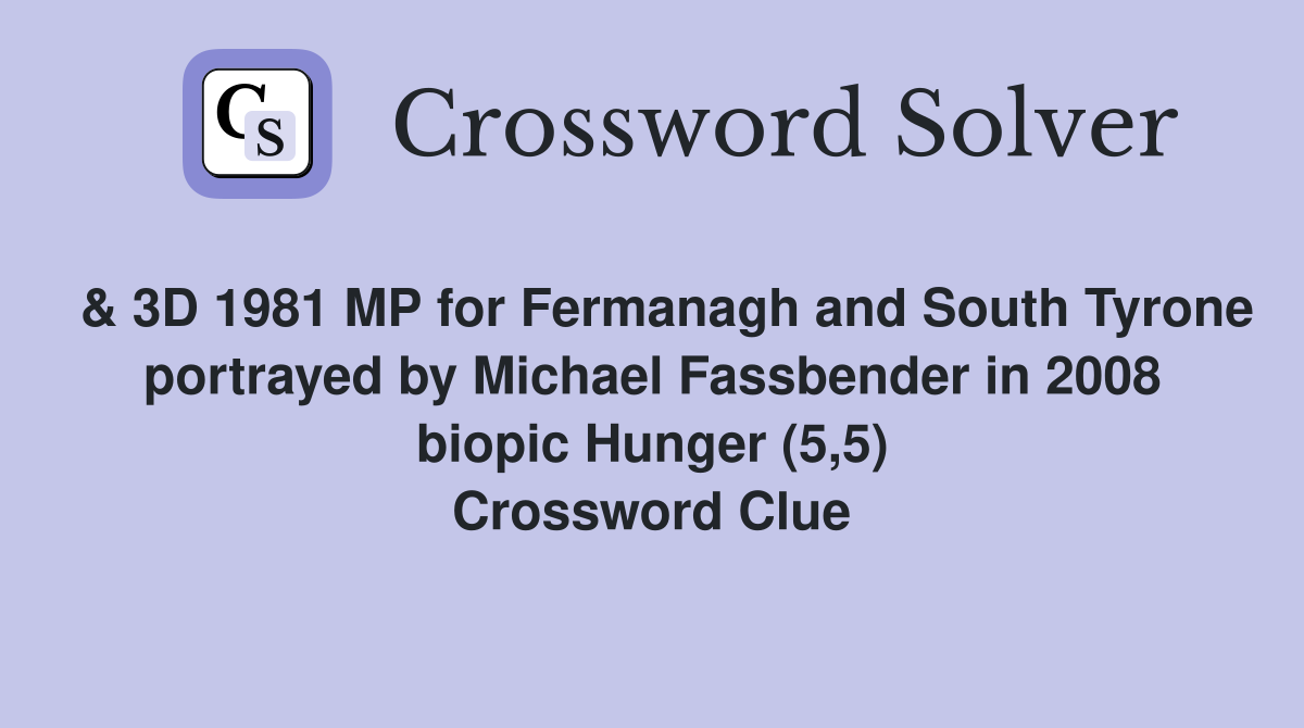 2008 biopic featuring Michael Fassbender as Bobby Sands Crossword