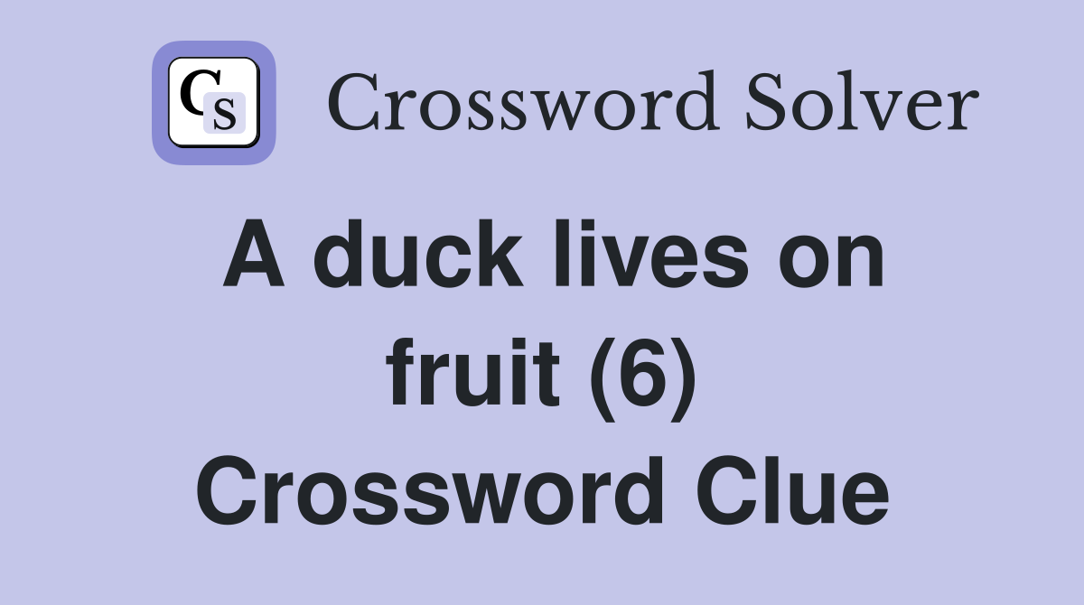 A duck lives on fruit (6) Crossword Clue Answers Crossword Solver