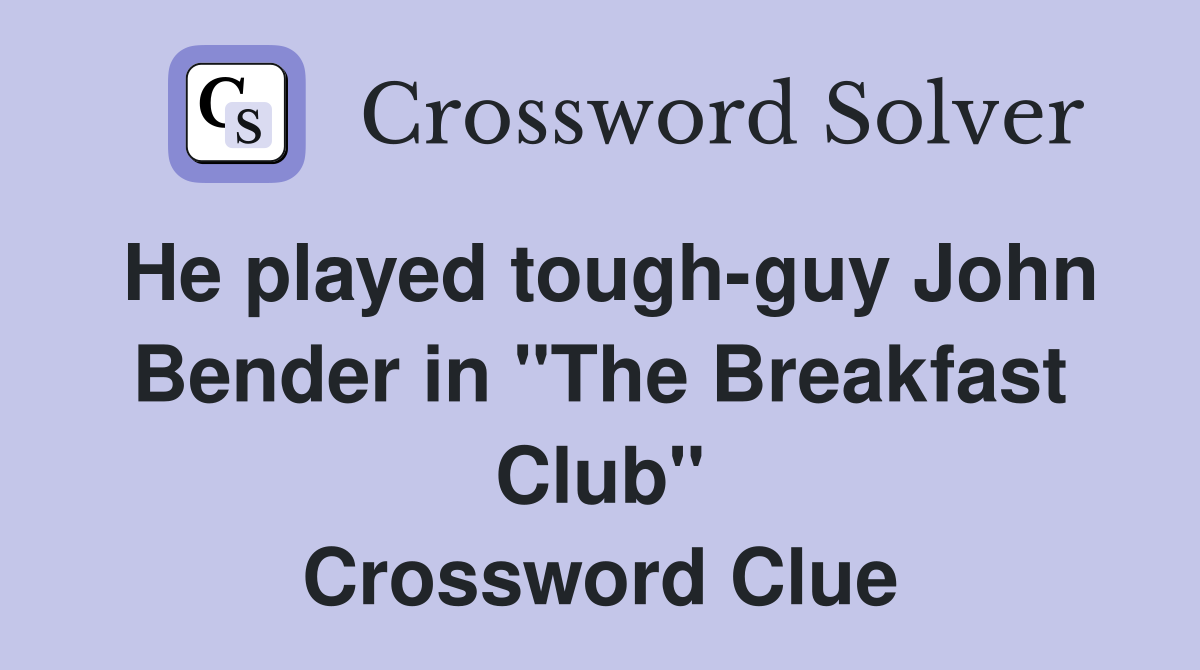 He played tough guy John Bender in quot The Breakfast Club quot Crossword