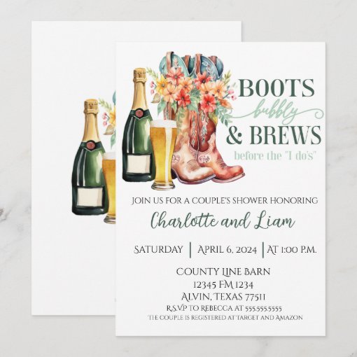 Boots and Bubbly Bridal Shower Invitation Brews Bubbly Couples