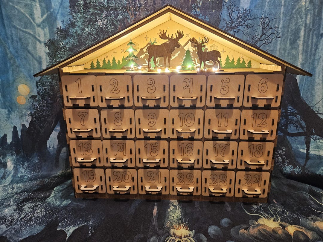 Lighted Christmas Advent Calendar With 24 Drawers to Hide Treats for