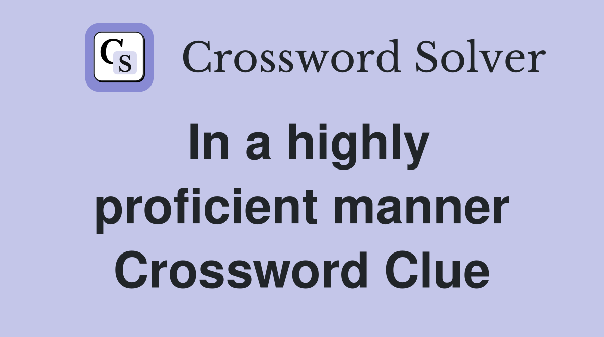 In a highly proficient manner Crossword Clue Answers Crossword Solver