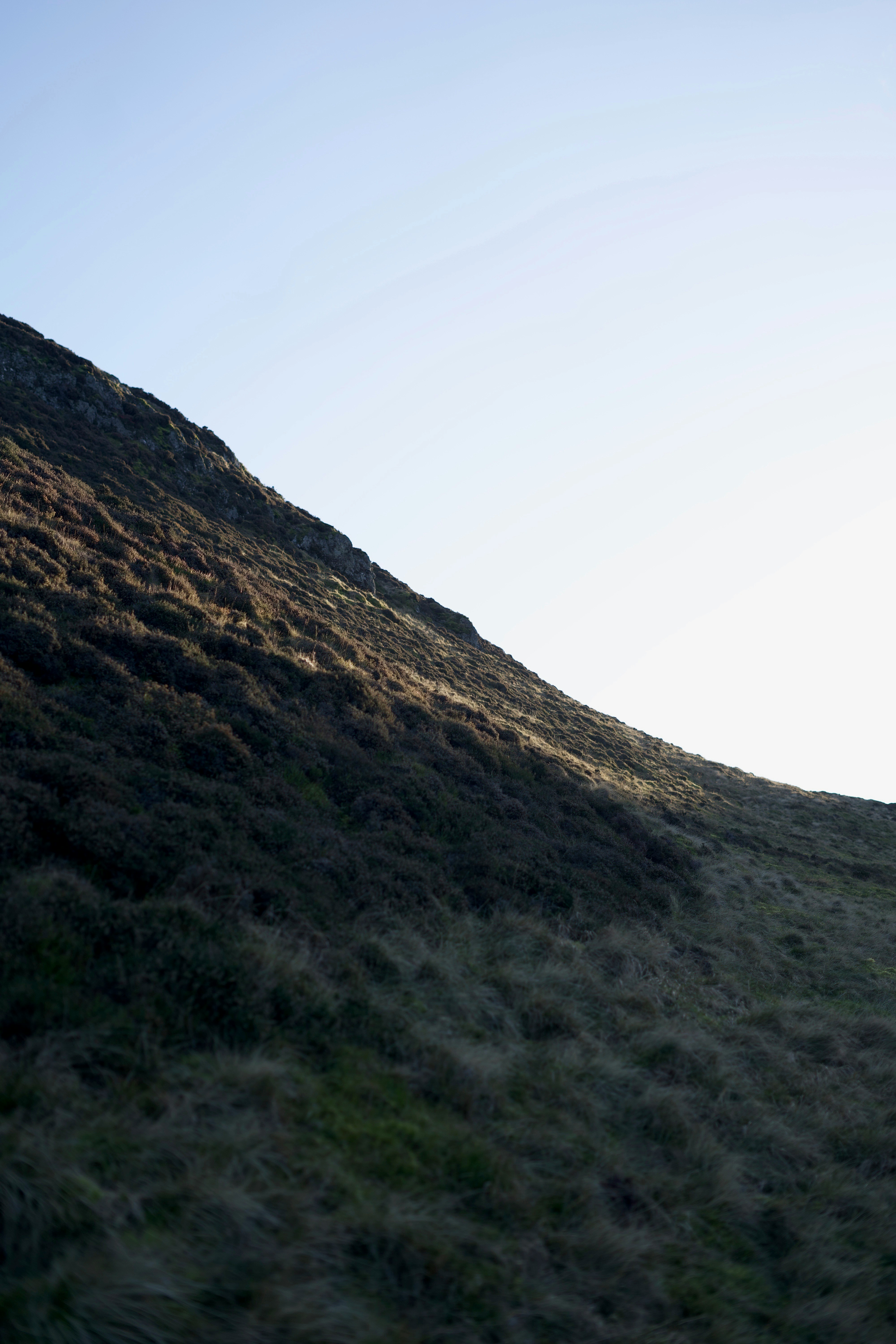 A grassy hillside is lightly touched by the sun photo Free Forest