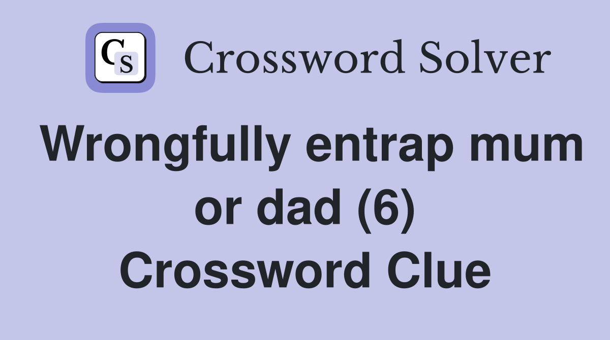 Wrongfully entrap mum or dad (6) Crossword Clue Answers Crossword