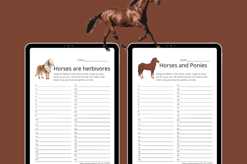 HORSE Fun Puzzles Word Search / Word Scramble / Crossword Worksheet