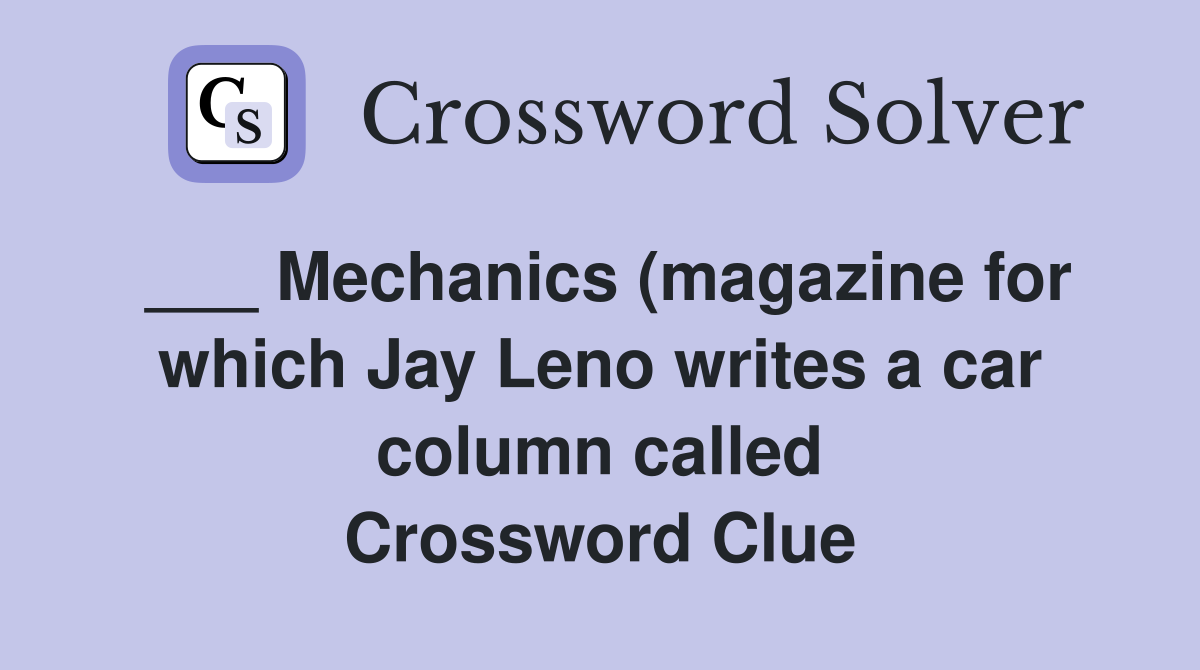 Mechanics (magazine for which Jay Leno writes a car column called Jay