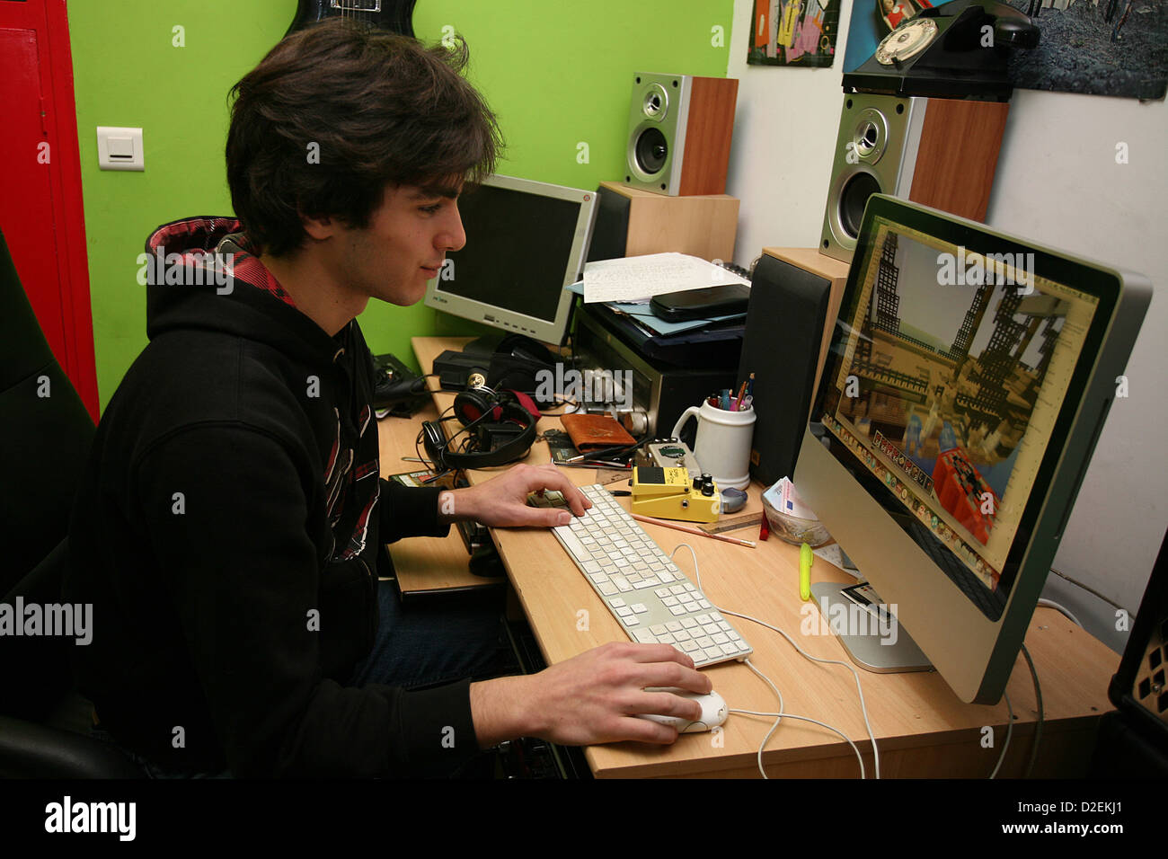 ADOLESCENT PLAYING VIDEO GAME Stock Photo Alamy