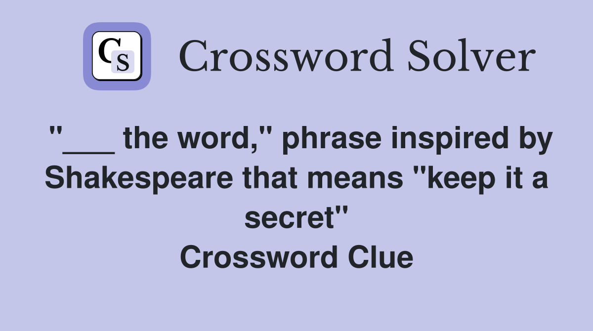 the word quot phrase inspired by Shakespeare that means quot keep it a secret