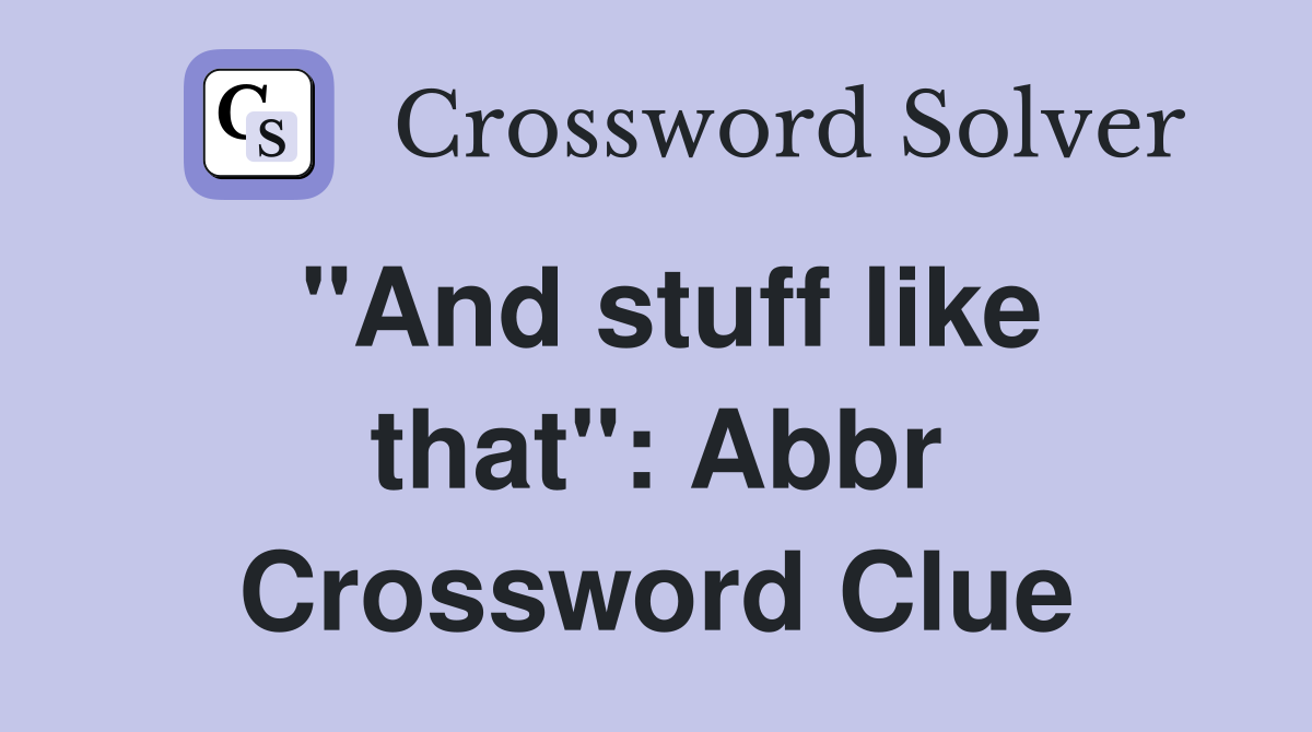 quot And stuff like that quot : Abbr Crossword Clue Answers Crossword Solver