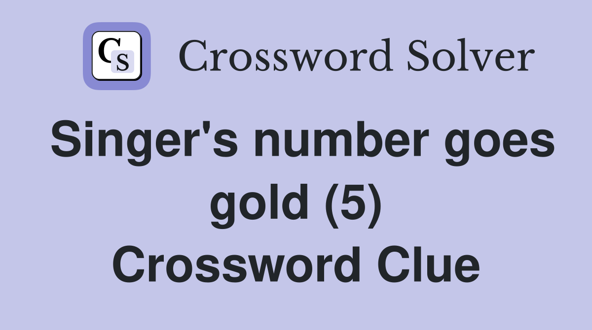 Singer #39 s number goes gold (5) Crossword Clue Answers Crossword Solver