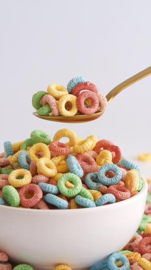 Bowl of Cheerios Like Cereal on Neutral Light Gray Background Stock